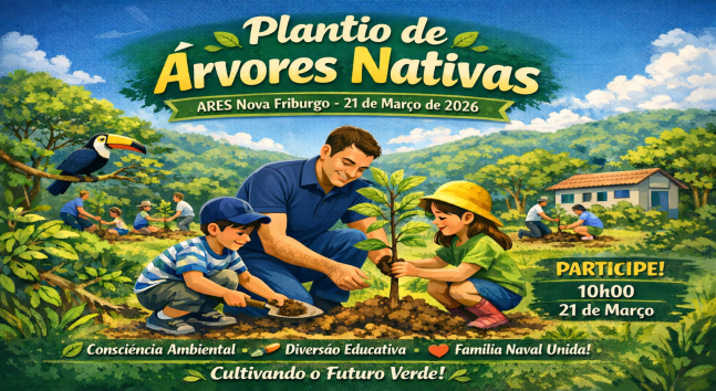 No dia 21 de março de 2026, às 10h00, será realizado um Plantio de Árvores Nativas da Mata Atlântica nas dependências da ARES Nova Friburgo, em uma atividade voltada especialmente para as crianças, mas aberta a todos os integrantes da Família Naval.